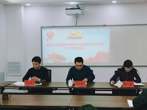 12月25日,國投大數據和寧夏登記結算聯合黨支部組織召開黨支部(擴大)學習會議,專題學習十九屆四中全會精神,集團公司黨委委員、總經理助理劉明,集團公司副總經理韓睿參加了會議,黨支部書記李磊主持會議。