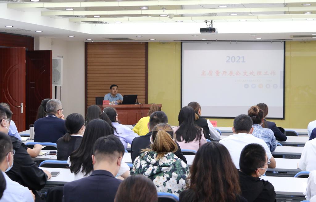 9月24日,寧夏國投集團舉辦公文寫作專題培訓班,邀請自治區政府辦公廳文電信息處處長何建平專題講授《高質量開展公文處理》。集團公司黨委副書記、工會主席郭聿維及各部室、子企業近40余人參加培訓。