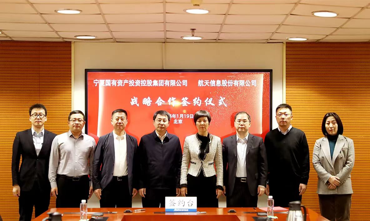 為扎實推動央企入寧,全面助力自治區數字產業發展,2024年1月19日,集團公司黨委副書記、總經理張保成再次到訪航天信息股份有限公司,在前期溝通的基礎上見證簽署戰略合作協議,并就后續具體合作進一步深入交流。航天信息黨委書記、董事長馬天暉出席會議并見證簽約儀式,航天信息財務總監高宇明、集團公司副總經理魏愛群出席會議并代表雙方進行簽約。