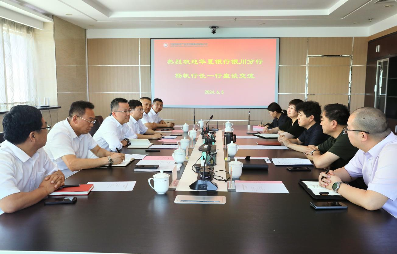 2024年6月5日,寧夏國投集團黨委書記、董事長楊舵與來訪的華夏銀行銀川分行行長楊帆一行座談,雙方就銀企合作進行了深入交流。寧夏國投集團黨委副書記、工會主席郭聿維、副總經(jīng)理楊薇、華夏銀行銀川分行副行長郭曉敏參加座談。