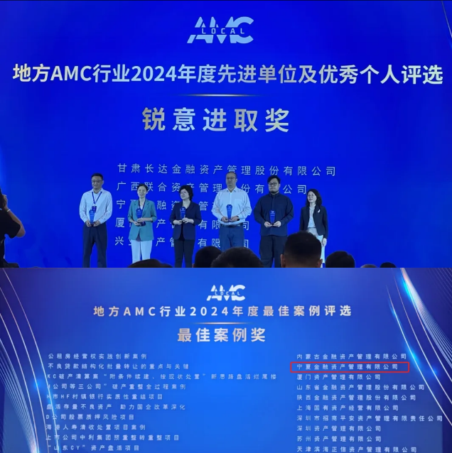 5月28日,寧夏金融資產管理公司在第十屆地方AMC行業年會上榮獲2024年度地方AMC“銳意進取獎”“最佳案例獎”兩個集體獎項。該獎項由59家地方AMC機構初評、行業聯絡員單位和專家委員會審定,旨在表彰過去一年中在不良資產收購處置、化解區域金融風險、促進區域經濟高質量發展等方面勇于創新、銳意進取,并取得顯著成績或重要突破的地方資產管理公司。