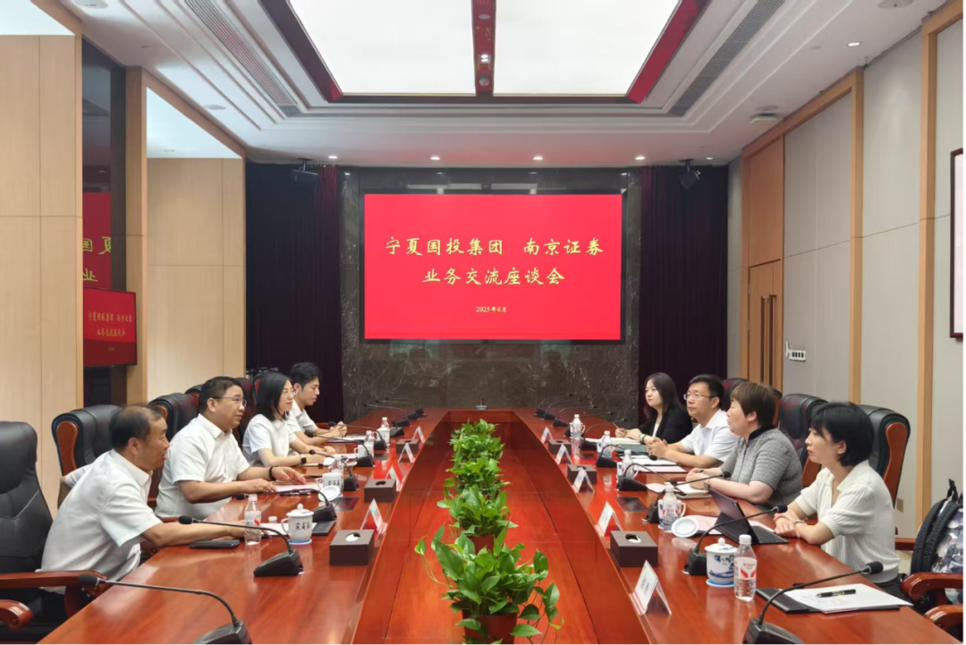 近日,寧夏國投集團副總經理楊薇一行前往南京證券公司總部,與南京證券公司總裁夏宏建、副總裁張興旭就區域股權市場業務合作事宜進行座談交流。