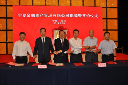 8月28日,寧夏首家國有地方金融資產管理公司——寧夏金融資產管理有限公司在銀川舉行揭牌暨合作簽約儀式。自治區各相關部門,自治區區屬各國有企業,在寧各大國有銀行、各股份制商業銀行及地方性商業銀行,各相關金融機構負責人;寧夏國投集團及各權屬企業近200人參加簽約儀式。儀式上,寧夏金融資產管理有限公司與工商銀行寧夏分行、農業銀行寧夏分行等10家銀行簽署了合作協議。