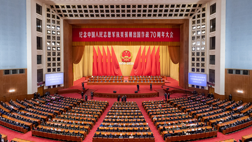 今天,我們在這里隆重集會,紀念中國人民志愿軍抗美援朝出國作戰(zhàn)70周年。