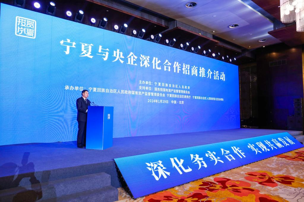 為接續精準發力,以“招大引強”助推全區經濟高質量發展,通過推介會塑造投資寧夏招商品牌,1月29日上午,由自治區人民政府主辦,自治區國資委、商務廳、駐北京辦事處承辦的,以“深化務實合作 實現共贏發展”為主題的寧夏與央企深化合作招商推介活動在北京舉辦?,F場,全國48家央企110余位企業負責人在觀看《寧夏——祖國西部的一塊寶地》宣傳片后,我區各部門、各地市及寧東能源化工基地管委會圍繞營商環境、重大產業及擬合作領域重大項目等,在分別進行推介的同時,聯袂向央企發出“邀請”。