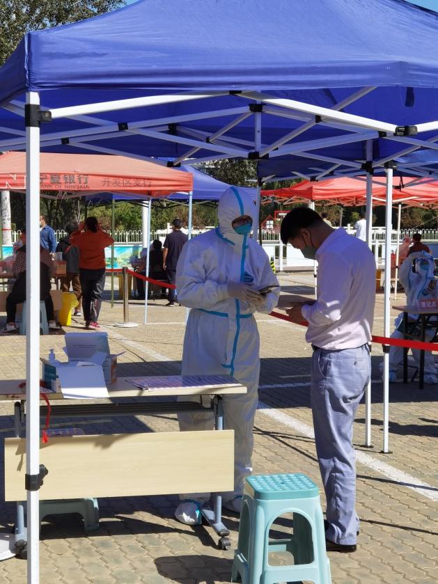 9月29日,共建社區銀川市金鳳區森林公園社區開展大規模核酸檢測,寧夏國投集團派出4名志愿者參與信息錄入工作。10月4日,正值國慶假期,根據自治區國資委統一安排,寧夏國投集團緊急抽調2批次6名黨員干部職工下沉社區參與疫情防控。10月8日凌晨,對口聯系社區被緊急封控,3名志愿者第一時間赴社區報到,于早晨7點前到崗開展工作,挨家挨戶錄入轄區內公寓800余人的相關信息,并參與閉環管理。