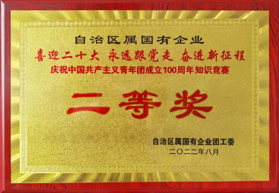 8月5日,自治區屬國有企業團工委“喜迎二十大、永遠跟黨走、奮進新征程”慶祝中國共產主義青年團成立100周年知識競賽成功舉辦,集團公司代表隊榮獲比賽二等獎。