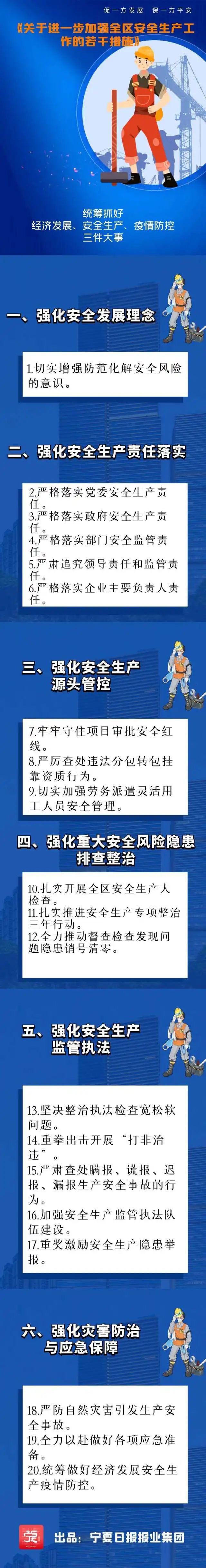 為進一步加強全區(qū)安全生產(chǎn)工作,消除安全風險隱患,有效防范遏制重特大生產(chǎn)安全事故發(fā)生,保持社會大局穩(wěn)定,日前寧夏印發(fā)《關于進一步加強全區(qū)安全生產(chǎn)工作的若干措施》的通知(以下簡稱《通知》)。《通知》確定了二十項加強安全生產(chǎn)工作的硬措施,為統(tǒng)籌抓好我區(qū)經(jīng)濟發(fā)展、安全生產(chǎn)、疫情防控三件大事提供有效保障。