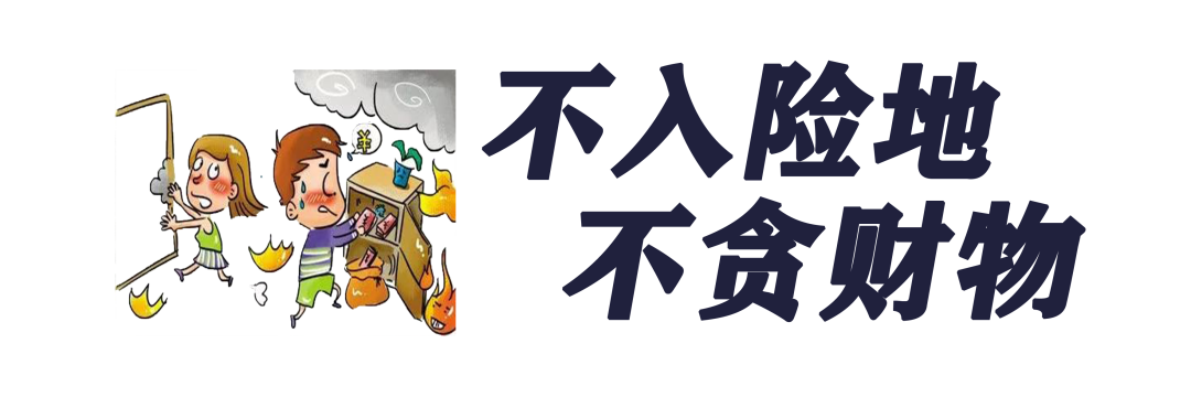 生命安全是第一位的,身處險境,應盡快撤離,不要貪戀財物,不要因小失大,白白浪費寶貴的逃生時間。已經逃離險境的人員,切莫重返險地,自投羅網。