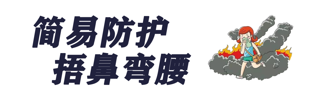 逃生時為了防止火場濃煙嗆入、預防窒息,可利用身邊如毛巾、衣物等物品將其打濕,捂住口鼻,以彎腰低姿勢的辦法撤離。