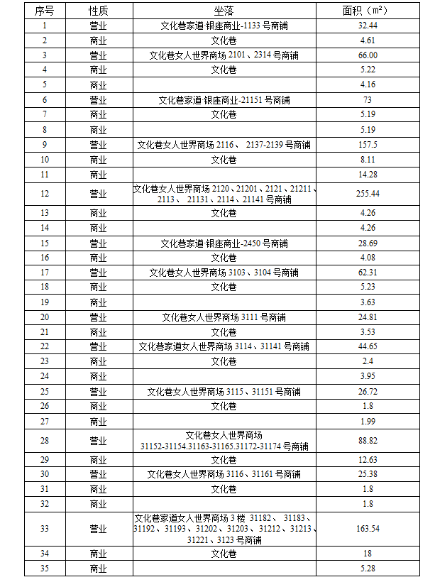(一)押物為固原市原州區(qū)文化巷女人世界商場及家道·銀座商業(yè)的17套商業(yè)房,面積共計1349.24㎡,具體如下: