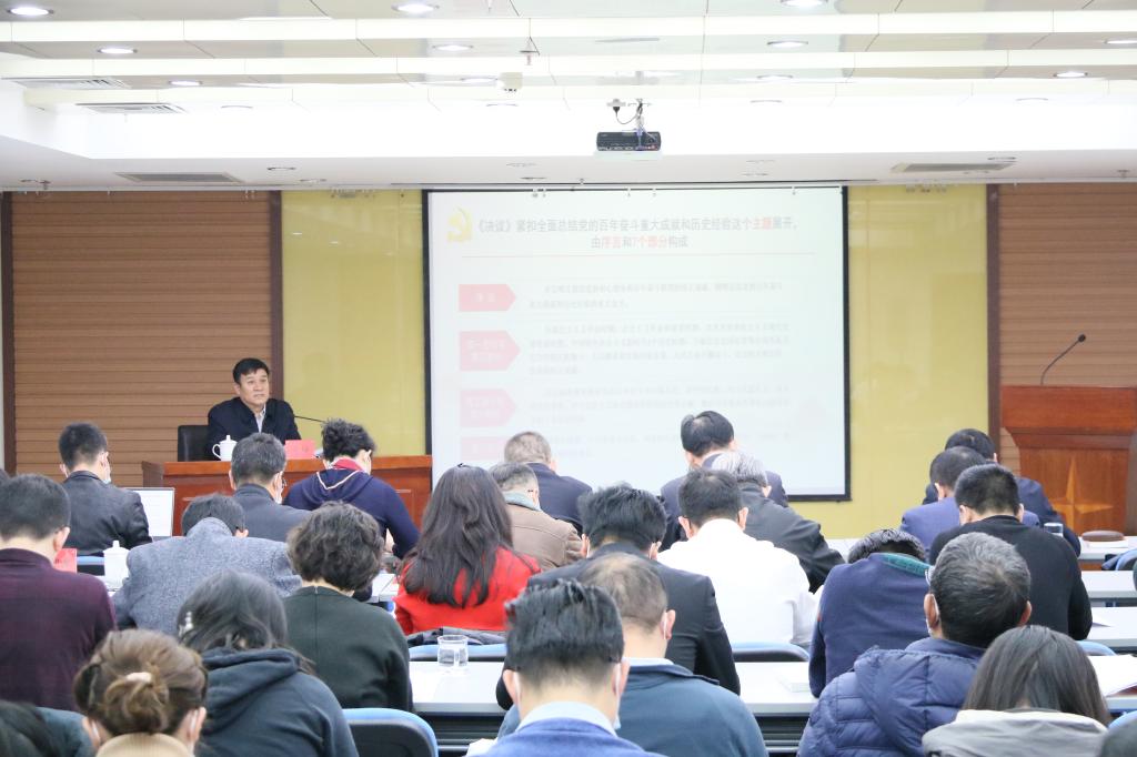 12月8日,自治區宣講團成員、自治區黨委組織部副部長景瑜深入寧夏國有資產投資控股集團宣講黨的十九屆六中全會精神,自治區黨委黨史學習教育第十一巡回指導組成員宋宗順、楊建虎到會指導,寧夏國投集團領導班子成員、本部全體黨員、各權屬企業領導班子成員、黨辦主任40余人現場聆聽宣講。
