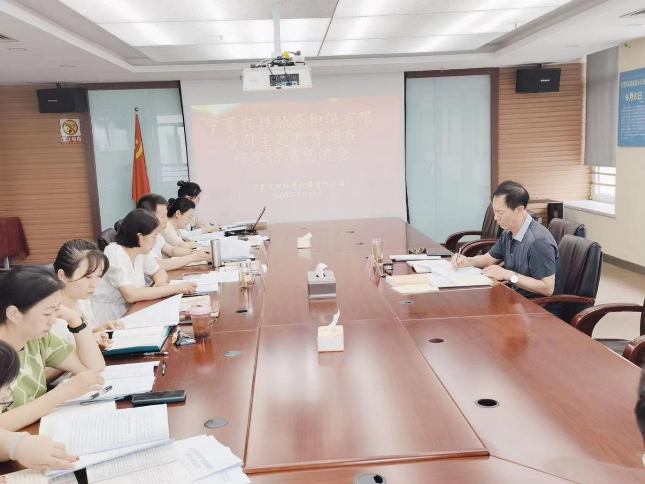 7月27日,農融擔公司黨支部召開學習貫徹習近平新時代中國特色社會主義思想主題教育調查研究情況交流會。集團公司分管領導、公司黨建聯系點領導張宗文同志到會指導,公司黨支部書記、執行董事、總經理劉愛麗同志主持會議。