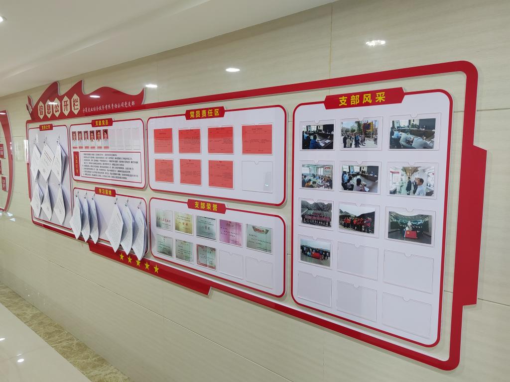 黨建文化墻圍繞主題教育、黨風廉政建設、黨務信息公開等內容,積極宣傳主題教育重要意義、根本任務和總要求等內容,以及習近平總書記關于國企改革的重要論述,建立黨務信息公開欄,展示支部和黨員風采,建立黨員責任區,進一步將黨建與業務融合。以圖文并茂的方式,將主題教育和黨建工作融入公司全體黨員員工的日常工作中,全體為黨員營造了“處處是課堂,時時受教育”的濃厚黨建氛圍,增強了黨建工作的直觀性、教育性和指導性。
