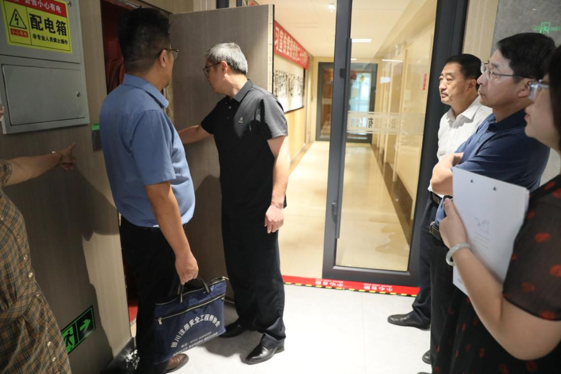 檢查組一行現場詢問了公司對自治區黨委十三屆四次全會精神學習貫徹及安全生產工作落實情況,并對辦公場所,配電室、檔案室、庫房等重點區域的消防器材配備、用電設備管理、安全疏散通道等進行了系統檢查。檢查組現場對檢查發現的不足提出整改指導意見。