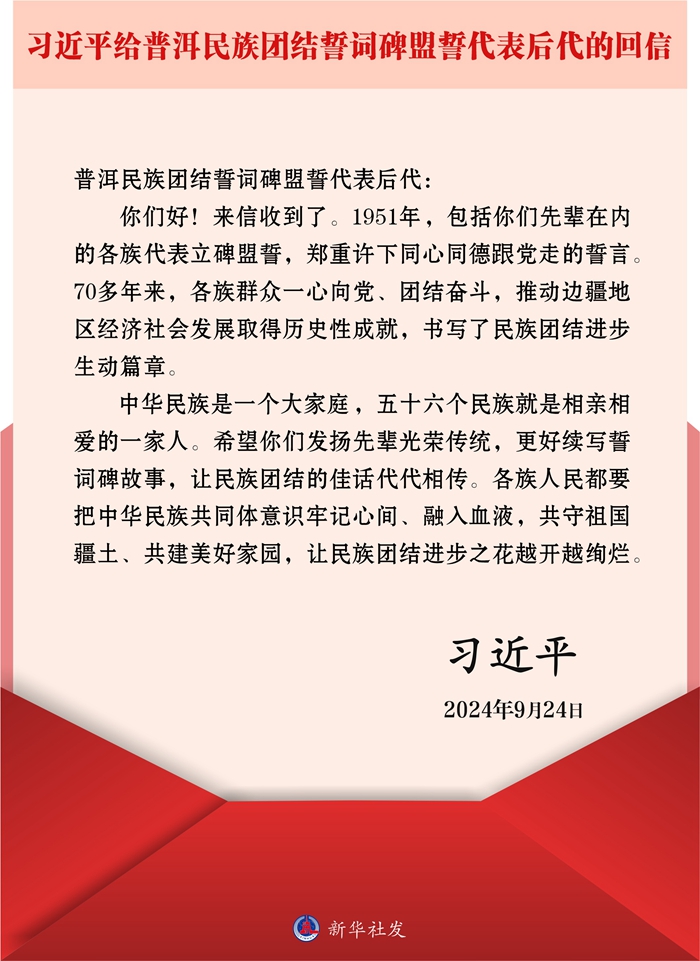 習近平回信勉勵普洱民族團結誓詞碑盟誓代表后代