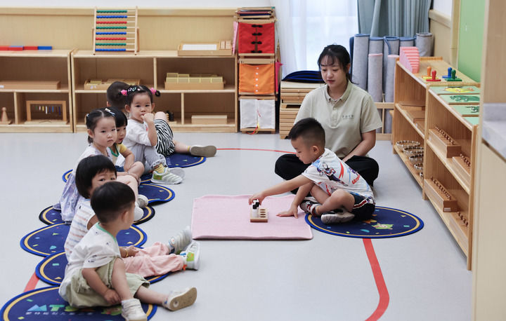 ??2024年8月20日,在嘉興市南湖區東柵街道的一家托育機構里,小朋友在上課。新華社記者 徐昱 攝