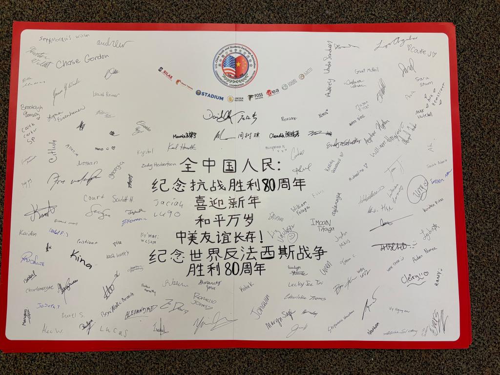 ??參與寄送賀卡的林肯中學學生威廉·費拉蓋正是在中國之行中萌生對歷史的濃厚興趣。他曾聽“飛虎隊”老兵親自講述二戰期間中國村民冒著巨大風險營救美國軍人的故事?!拔覀兊氖澜绗F在和未來都不需要戰爭,我希望美中兩個大國之間只有和平與友誼。”