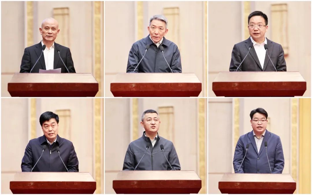 彭凡、郝向峰、曹建偉、汪世峰、莊寧5名企業(yè)家和商協(xié)會代表朱鳳杰(從左至右、從上至下)發(fā)言。